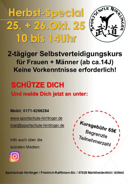 Selbstverteidigungskurs / Frauen- Spezial am 09.+10. November 24