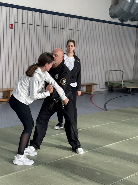 Die Schülergruppe der freiwilligen Dienste in Bayern absolvierte bei uns einen 3-4 stündigen Workshop zum Thema: Eigensicherung / Verhaltensregeln in Gefahrensituationen und Übungen im Stand und Boden / Selbstverteidigungstechniken / u.a. . Ziel war es, ergänzend zum theoretischen Part einen kleinen EInblick in die praktische An-wendung der Gewaltprävention zu vermitteln.